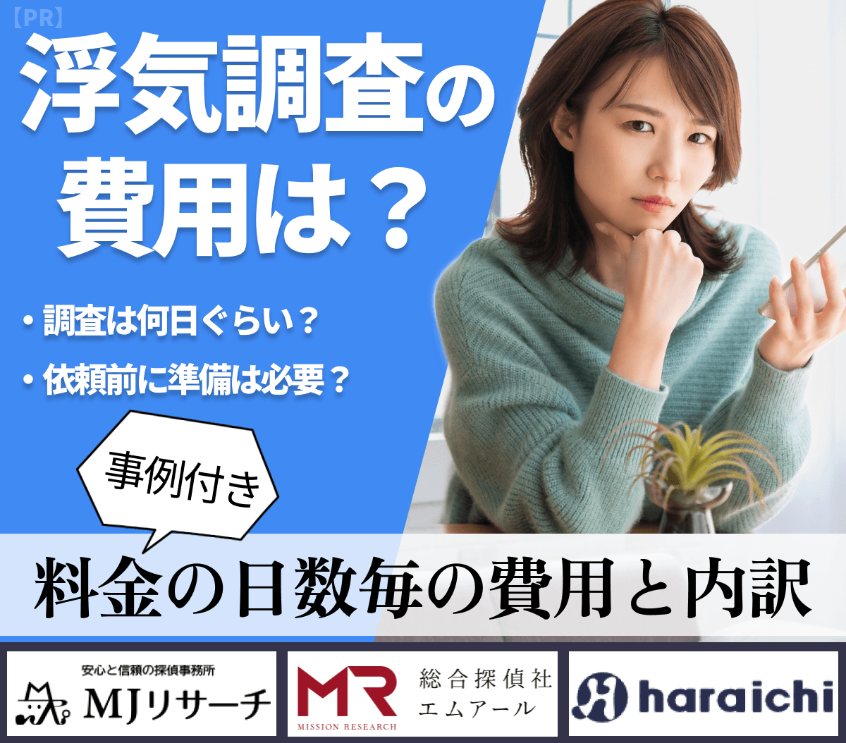 業 者 名 | MJリサーチ | 原一探偵事務所 | MR探偵事務所 | ラビット探偵社 |