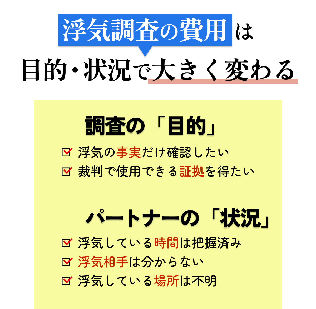浮気調査の目的別の費用相場の目安