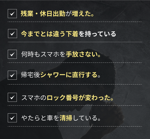 次のような行動があれば、浮気の可能性はかなり高いと言えます。