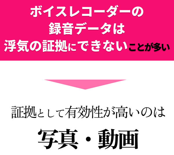 浮気調査の定番グッズといえば、ボイスレコーダー。パートナーと浮気相手の会話や、浮気を裏付ける音声を録音できれば、浮気を証明する重要な証拠となります。しかし、ボイスレコーダーは利用する際に、気を付けるべきポイントがあります。