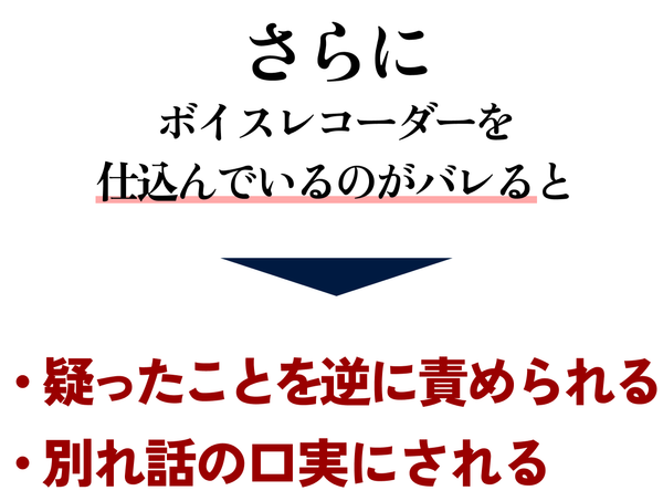 場合によっては、夫婦仲が険悪化し、望まぬかたちでの離婚を突き付けられる、プライバシーの侵害により訴えられるといった最悪の事態を引き起こす可能性もあるでしょう。