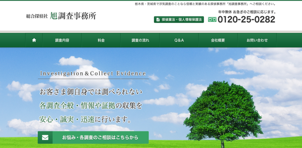 ![]() | 本社 | 栃木県栃木市川原田町116 | 合戦場駅より徒歩5分 | - | - | https://t-asahi.jp/ | 栃木県公安委員会 探偵業届出証明書 第41200015号 | |