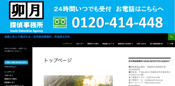 ![]() | 本社 | 茨城県古河市東本町2-2-8 京立ビル2階 | 古河駅より徒歩11分 | 24時間 | - | http://uzuki-da.co.jp/top/ | 茨城県公安委員会 第40140009号 | |