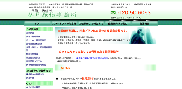 ![]() | 本社 | 東京都世田谷区下馬4-12-2 | 三軒茶屋駅 徒歩17分 | 24時間対応可 | 年中無休 | - | http://www.s-tantei.com/main.html | 東京都公安委員会 探偵業届出 第30150289号 | |