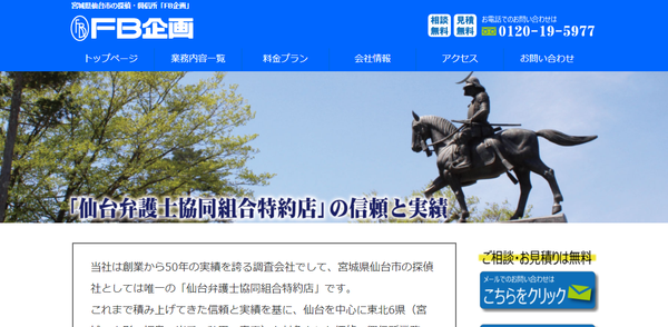 地下鉄南北線「広瀬通駅」西4出口より徒歩11分 | 不明 | 不明 | - | https://www.fbkikaku.com/ | 宮城県公安委員会届出 第22170013号 | |