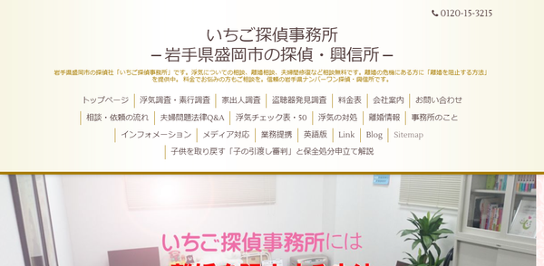 ![]() | 本社 | 岩手県 盛岡市内丸17-7 藤島ビル201 | 県庁・市役所前(バス)徒歩2分 | 24時間対応可 | 年中無休 | - | https://ichigotantei.com/ | 第21070005号 | |