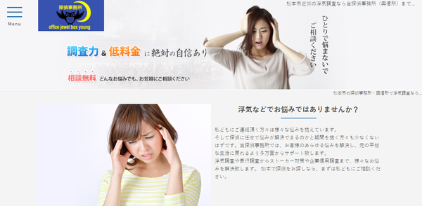 ![]() | 本社 | 長野県長野市栗田114−2 | 長野駅 徒歩20分 | 24時間対応可 | 年中無休 | - | https://office-jewel-box.net/ | 探偵業届出 第48200013号 | |