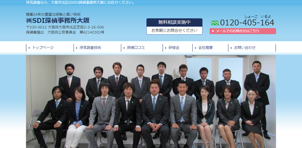 ![]() | 大阪本社 | 大阪府大阪市北区芝田2-3-16NLC北梅田ビル506 | 大阪駅 徒歩7分 | 24時間対応可 | 年中無休 | - | https://www.sdi-osaka.com/ | 大阪府公安委員会届出第62140302号 |