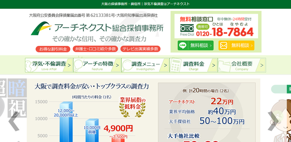 アーチネクスト総合探偵事務所大阪本部詳しく見る >