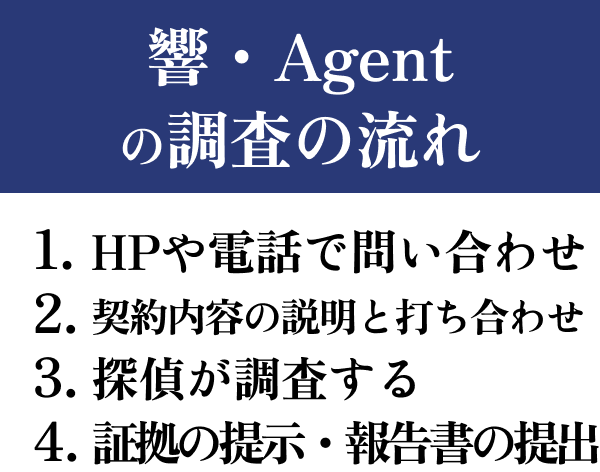 響・Agentでは、電話や電子メールを通じて無料で相談を受け入れています。浮気調査に特化した探偵事務所なので、人探しなどには対応していないので注意しましょう。