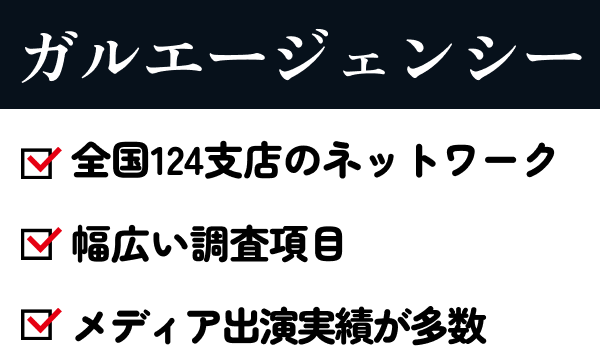 ガルエージェンシーは、全国展開のネットワークを生かした迅速な対応と高い調査力が強みの探偵社。