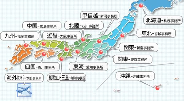 Akai探偵事務所は、日本全国に営業所があるため、広域調査に自信があります。