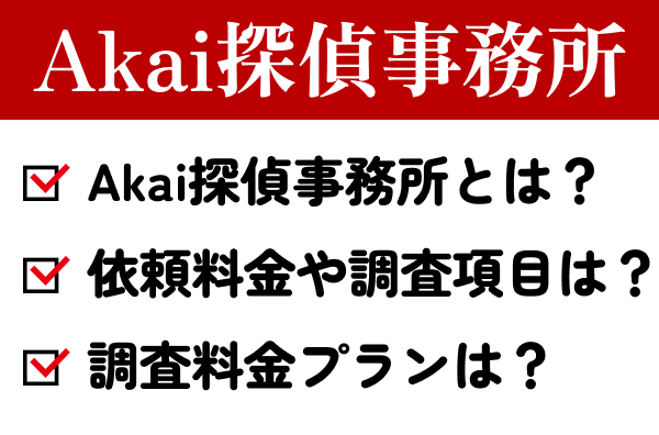 Akai探偵事務所の調査項目ごとの依頼料金を確認していきます。