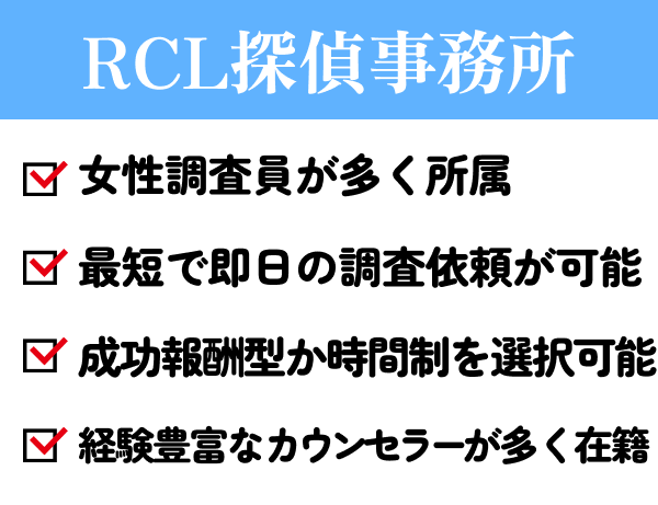 RCL探偵事務所に関して解説しましたがいかがでしたか?RCL探偵事務所をおすすめするのは以下のような方です。