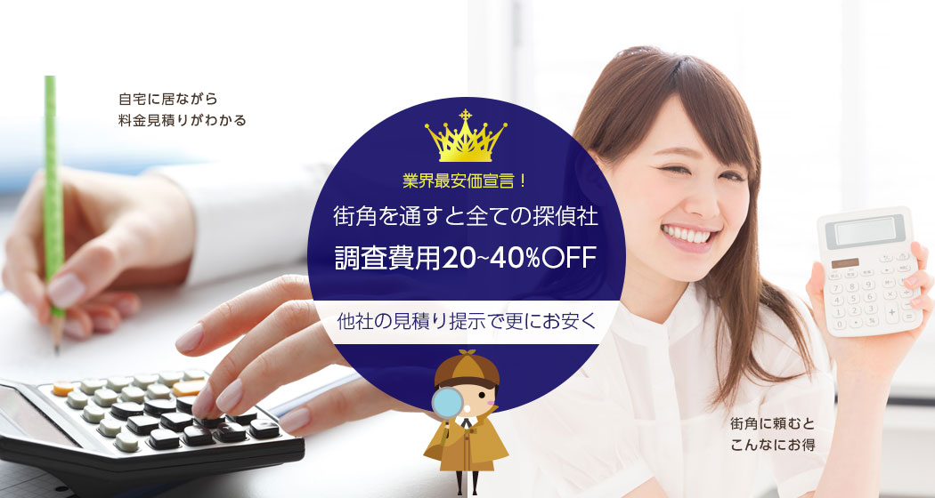 また、当サービスを通じて探偵社をご利用された場合、調査費用も20〜40%割引になります。