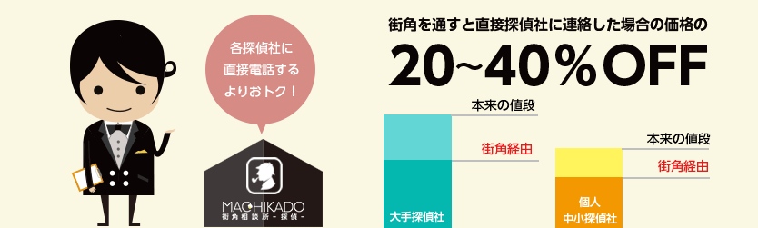 街角相談所 -探偵- を通したお見積りは定価の20~40%OFFでご案内しています。