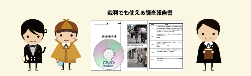 例えば、弁護士のバックアップがある、警察OBと連携している、解決実績が高い、裁判でも利用できる証拠映像・報告書の作成が可能等、信頼できる精査された事務所だけをご紹介差し上げます。また、ご希望の方には調査後に連携できる弁護士のご紹介も可能です。